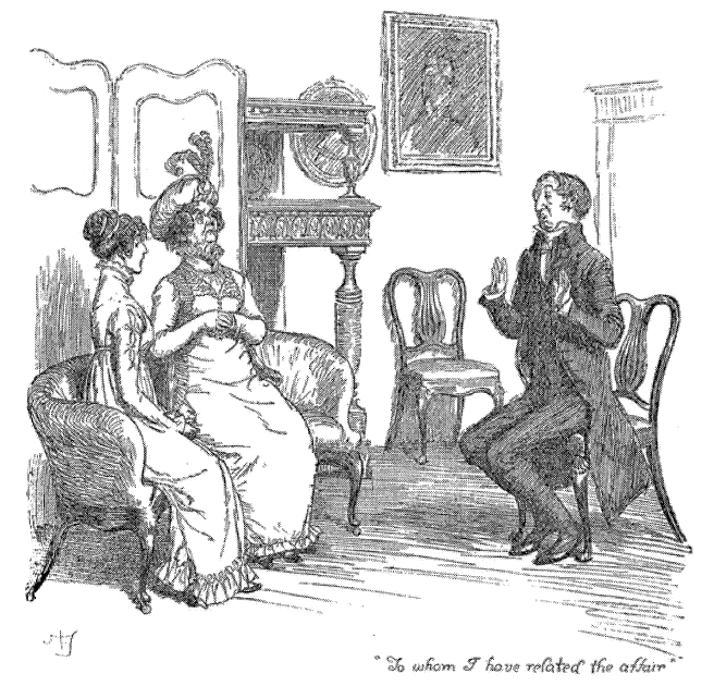 Mrs. Croft of Persuasion is another wise woman, who keeps her husband from driving into ditches, literally and metaphorically. Anne Elliot thinks this is “no bad representation of the general guidance of their affairs”: Mrs. Croft gently and lovingly guides her husband well. Charlotte Lucas learns to similarly guide her husband, Mr. Collins.